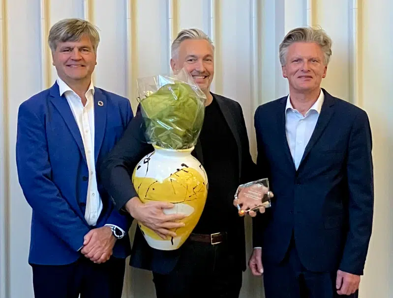 På billedet ses fra venstre ses borgmester Thomas Lykke Pedersen, CEO Rune Bak Jensen og udvalgsformand Lars Søndergaard.
